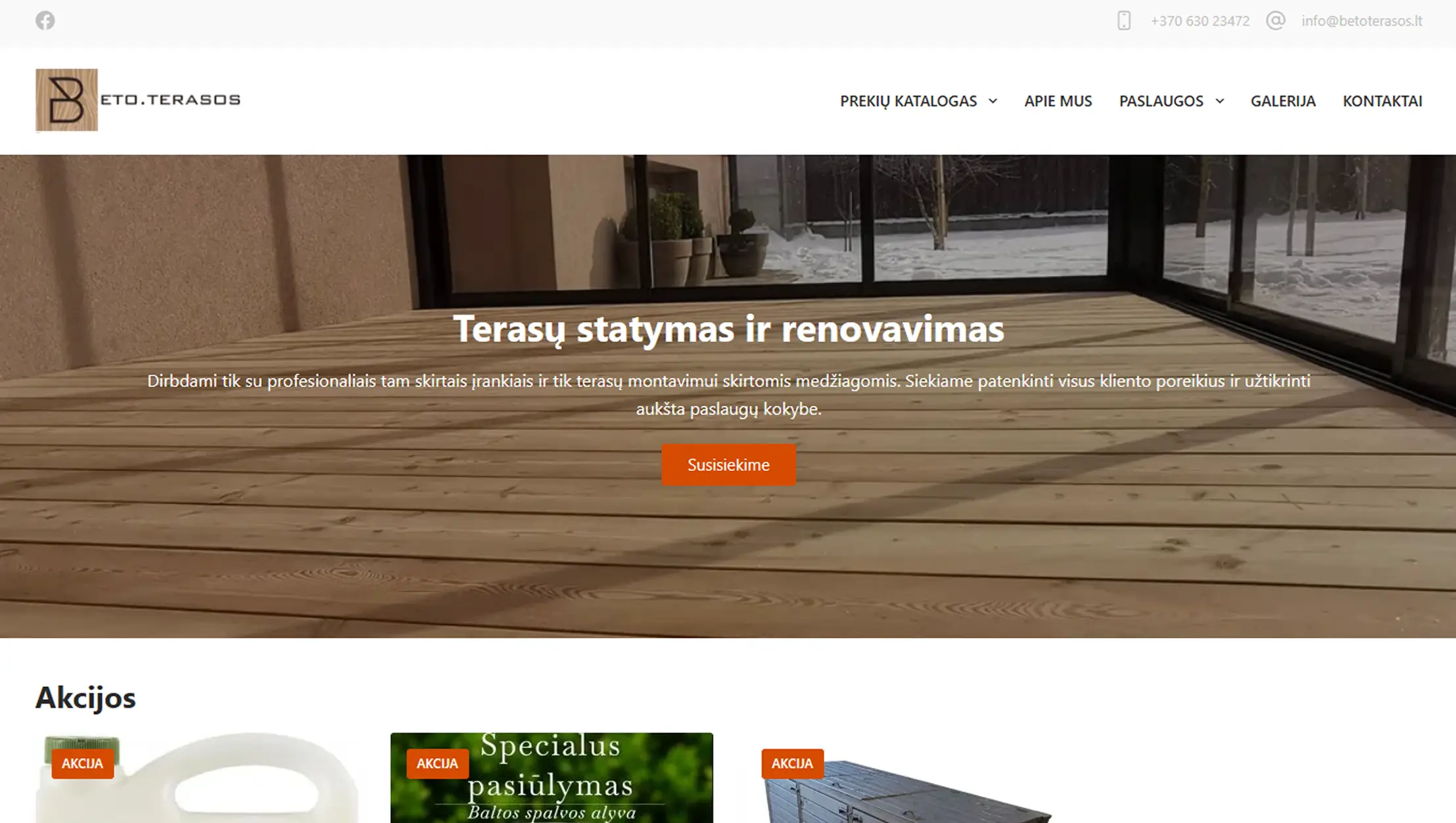 Kiekviena paslauga turi platesnę nuotraukų galeriją, leidžiančią vartotojams geriau susipažinti su pasiūlymais. Aiškiai matomas mygtukas arba nuoroda nukreipia į kontaktų formą, kad užsakymas ar užklausa būtų paprasta ir greita.